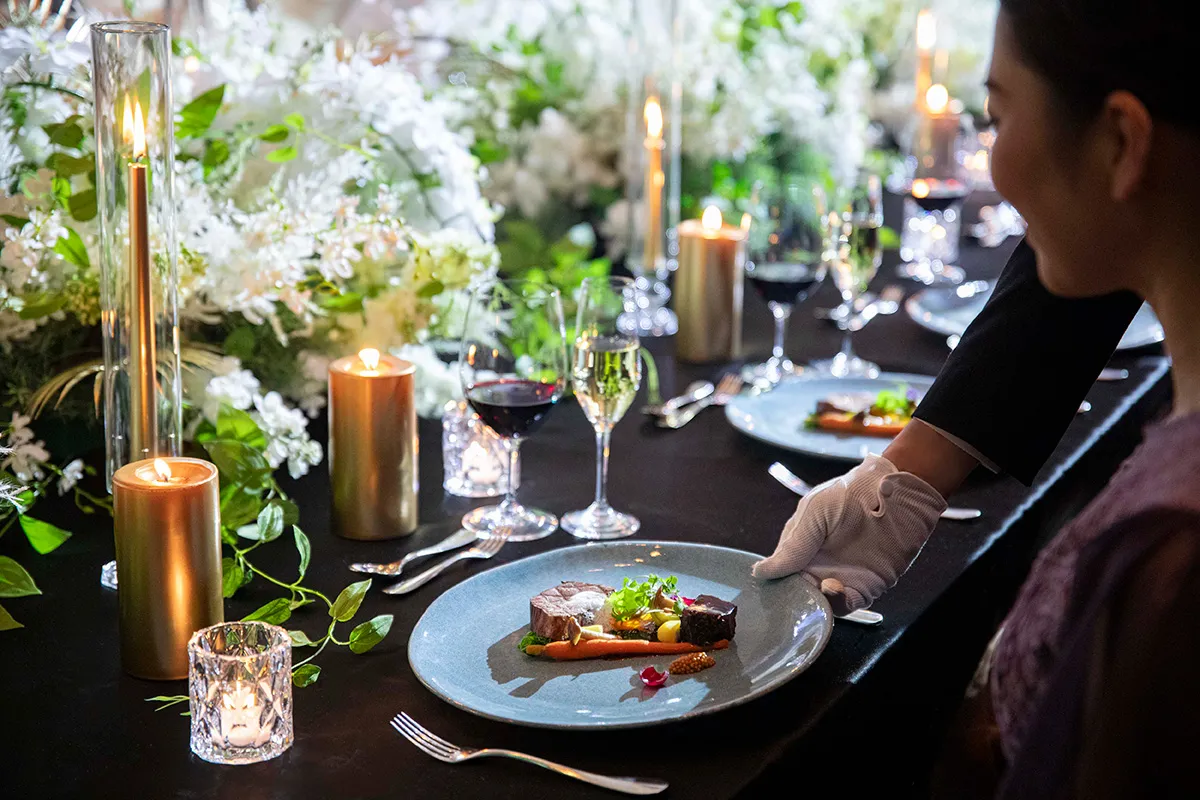 おふたりの人生や美意識がデザイン・香り・音・味となって、時間と空間を静かに満たしていく。華やかさよりも、“深い満足”を大切にする贅沢。心に長く残る、密度の高いひとときを紡ぐ
